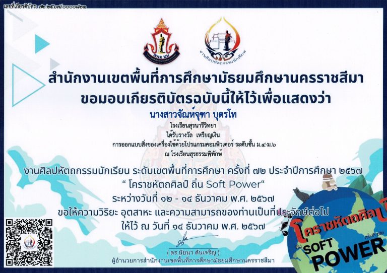 การแข่งขันเหรียญเงิน ออกแบบสิ่งของเครื่องใช้ด้วยโปรแกรมคอมพิวเตอร์ งานศิลปหัตถกรรมนักเรียน สำนักงานเขตพื้นที่การศึกษามัธยมศึกษานครราชสีมา ปี 2567