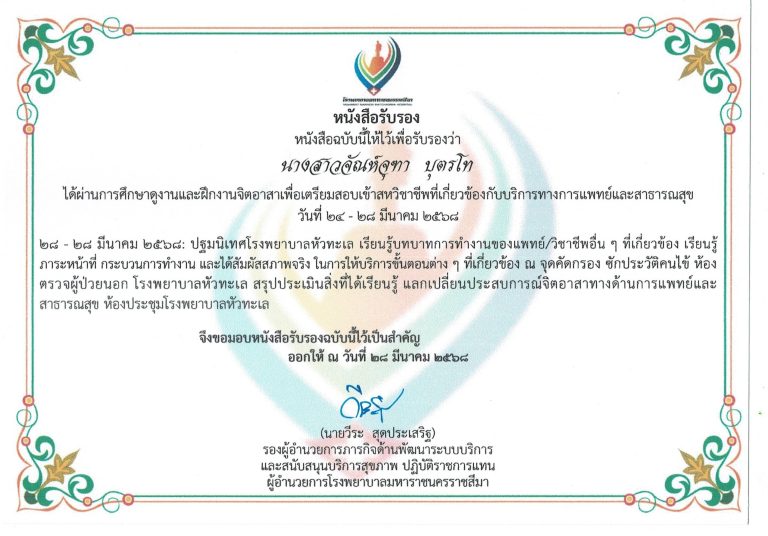 การพัฒนาตนเองศึกษาดูงานและฝึกจิตอาสาเพื่อเตรียมสอบเข้าสหวิชาชีพที่เกี่ยวข้องกับบริการทางการแพทย์และสาธารณสุข โรงพยาบาลหัวทะเล ปี 2568