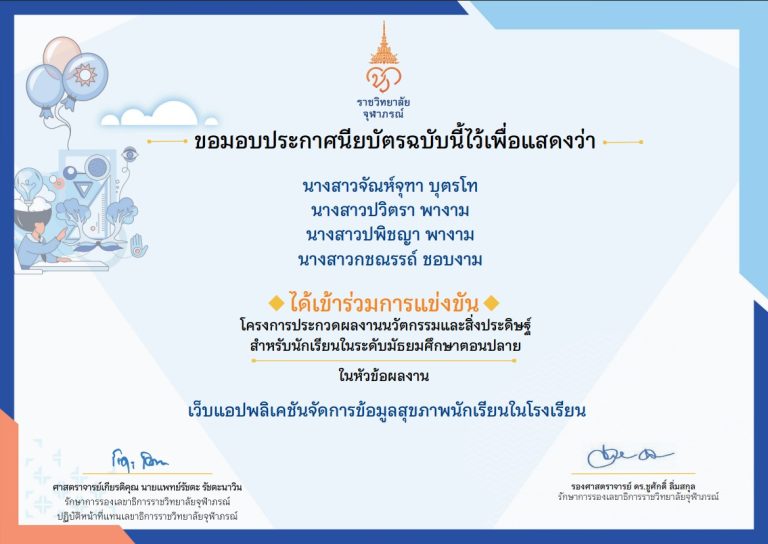 การแข่งขันส่งโครงงานประกวดผลงานนวัตกรรมและสิ่งประดิษฐ์สำหรับนักเรียนในระดับมัธยมศึกษาตอนปลาย วิทยาลัยจุฬาภรณ์ ปี 2568