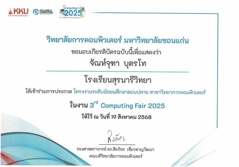 การแข่งขันประกวดโครงงาน ระดับมัธยมศึกษาตอนปลาย สาขาวิทยาการคอมพิวเตอร์ วิทยาลัยการคอมพิวเตอร์มหาวิทยาลัยขอนแก่น ปี 2568
