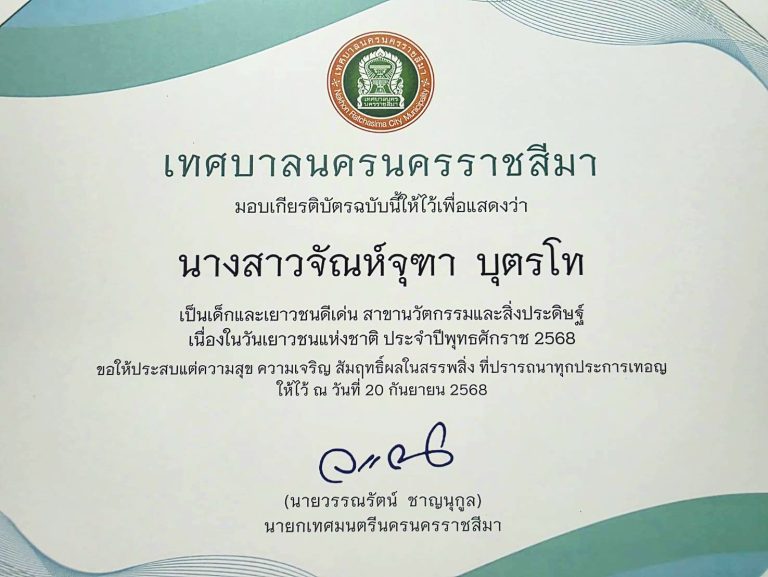 การแข่งขันเด็กและเยาวชนดีเด่นรางวัลชมเชย ปี 2569 สังกัดสำนักงานเขตพื้นที่การศึกษามัธยมศึกษานครราชสีมา
