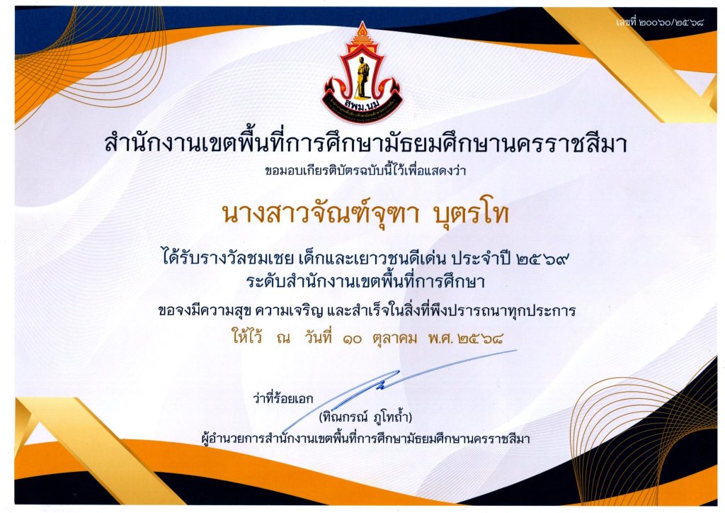 เด็กและเยาวชนดีเด่นรางวัลชมเชย ปี 2569 สังกัดสำนักงานเขตพื้นที่การศึกษามัธยมศึกษานครราชสีมา